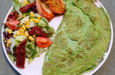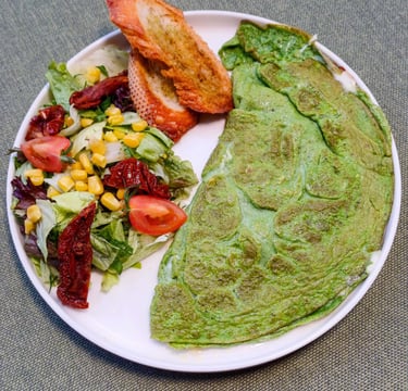 Ispanak, Mozzarella, Yumurta, Akdeniz yeşilliği, Parmesanlı ekmek