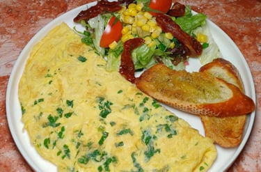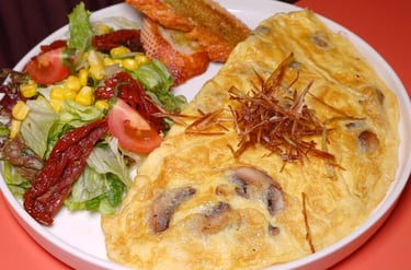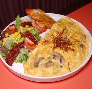 Mantar, Kaşar Peyniri, Yumurta, Akdeniz yeşilliği, Parmesanlı ekmek