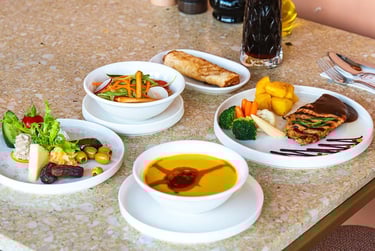 Hurma / Zeytin / Yaprak Sarma Patlıcan Mousse / Haydari Tereyağı / Bergama Tulum Peyniri Domates ve Salatalık